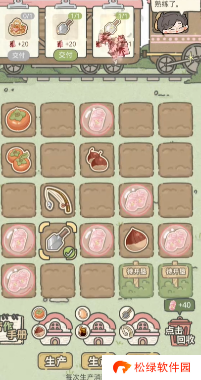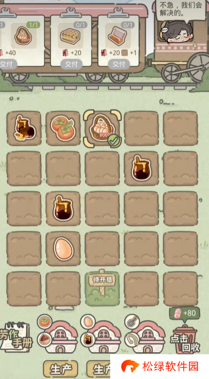 2、点击收集方格中的电池,根据上方的订单制作多个鸡蛋和蜂蜜,合成目标物品。