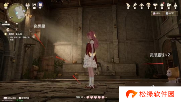 1、从右侧门进入可收集两个灵感露珠,在前方建筑物上可收集一个奇想星。