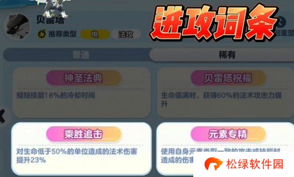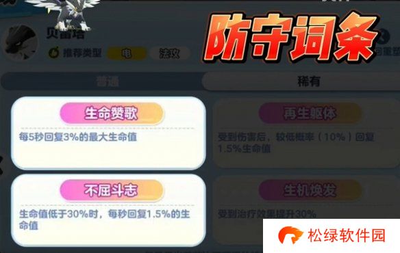 3、被雷达的技能词条分别两种搭配,一种是防守型词条,为生命赞歌和不屈斗志,以增加续航伤害为主,另一种是进攻类词条,为乘胜追击和元素专精,极致强化技能伤害。