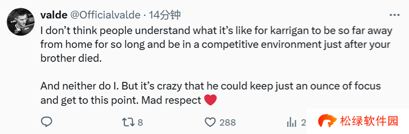 Valdemar Bjørn Vangså | valde:我认为人们无法理解karrigan在哥哥去世后远离家乡这么久并身处竞争激烈的环境中是什么感觉。