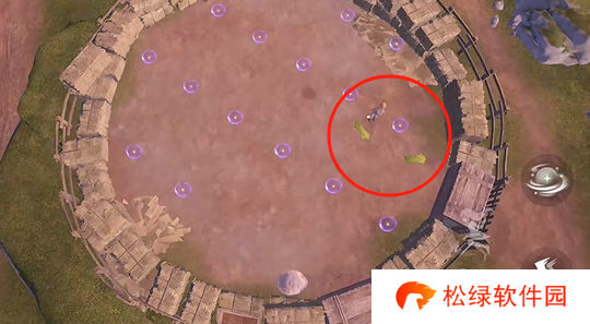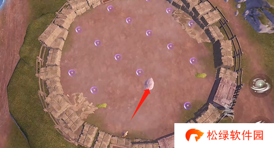 4、然后来到草堆的位置,防止绵羊吃到草,让它继续收集地图中的紫色球体。