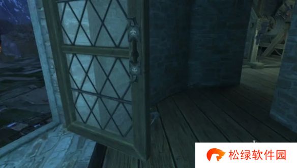 7、来到楼下,旋转火炬,点击得到黄铜部件和椅子上的木头把手,回到楼上,将窗户摇把插入凹槽中,旋转摇把,再拖拽木头滑块。