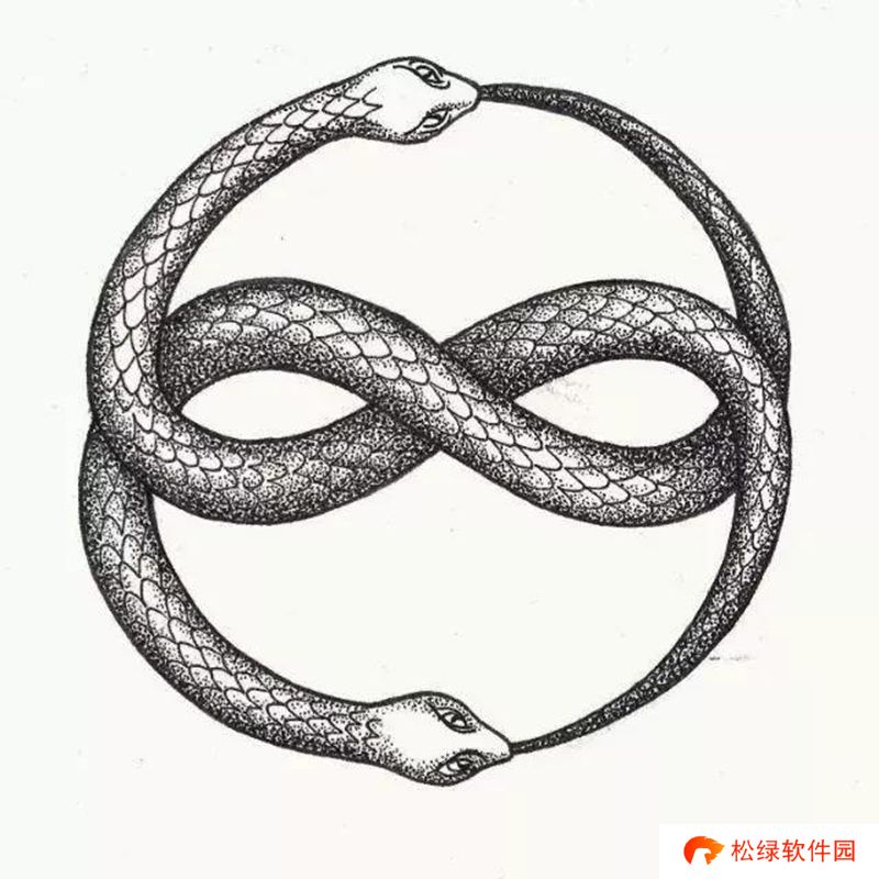 衔尾蛇的图案交织多重意义,而最主要的符号意义,发展自符号本身的外表形态。符号中的大蛇正在咬噬、吞食着自己的尾巴,
