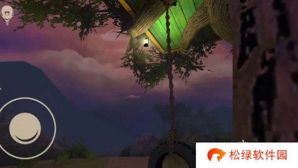 3、第三个:位于树屋的秋千下的树干上绑着一个,多荡几下秋千可以直接拿到。