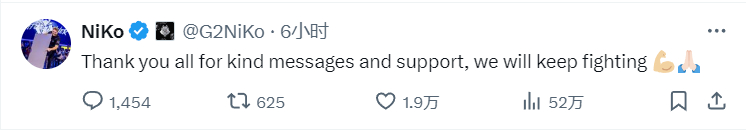 NiKo:“谢谢大家的留言与支持,我们会继续努力。”