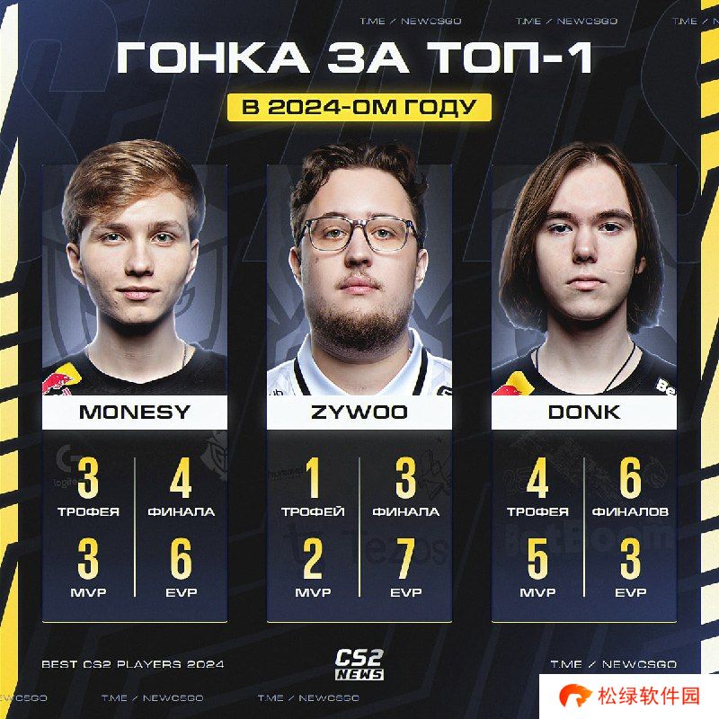 TOP1热门候选者横向对比:donk成绩领先于m0NESY与ZywOo