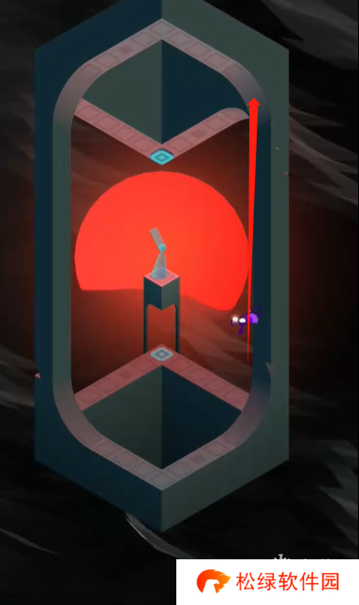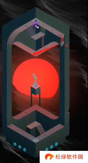 2、到达下方红**域后,继续旋转机关,让角色踩到右侧的机关上。