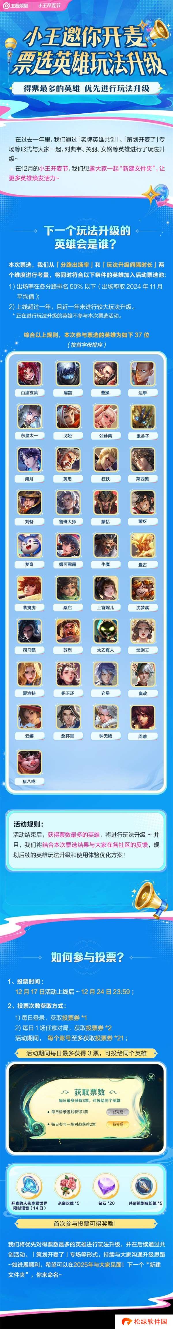 在本次「英雄玩法升级票选」中,获得票数最多的英雄,将优先进行玩法升级~