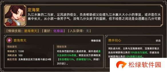 玩家在选择上述对话之后将会提升与定海棠的关系,并且继续做与诸葛神机后续的流程就可以成功邀请定海棠入队了。