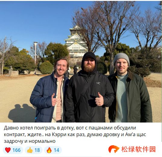 新科CS冠军指挥、Team Spirit选手chopper在个人电报频道分享了一张与Dota2选手CCNC以及Cr1t在日本的合影并配文称"其实我想打刀塔已经很久了,于是我和身边的这两位聊了聊合同,等下.... 让我打carry?我只会玩小黑和敌法可以吗???"