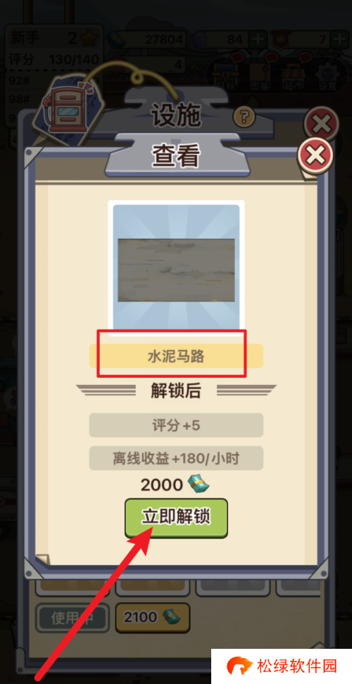 3、确认消耗2000代币后,点击“立即解锁”,这样就能在加油站中铺设水泥路面了。