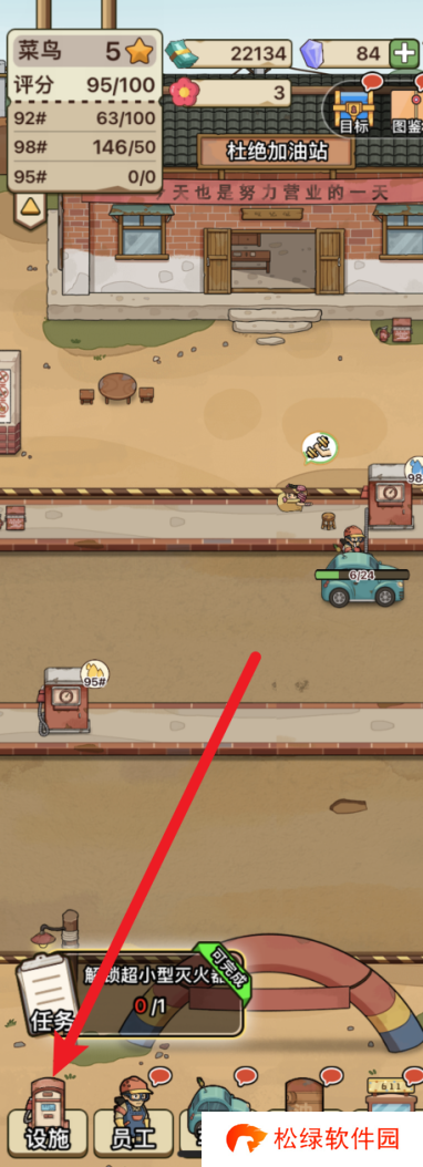 1、首先,我们得打开平安加油站的游戏界面,然后定位至左下角,在那里对设施进行点击。