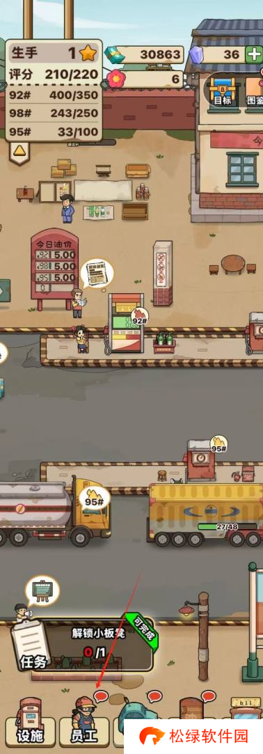 1、首先,打开游戏的主菜单,然后点击位于底部的员工选项。