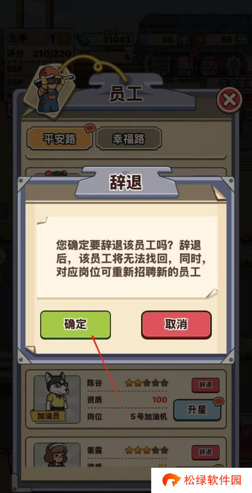 2、在员工界面中,你可以观察到目前正在岗位上工作的员工。在此,挑选出你打算解雇的那位员工。