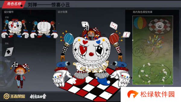 第三款名为惊喜小丑,这款皮肤也是玩具系列的皮肤,皮肤颜色是以多巴胺为主的,这款皮肤感觉作者的主体设计的有些问题,刘禅本人太小了,人偶太大了。而且因为有针角,感觉是一个破烂的玩偶。