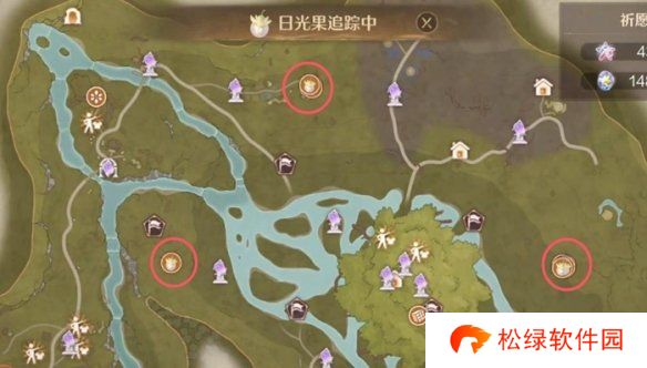 1、展开地图,于左下角将采集目标切换至日光果。