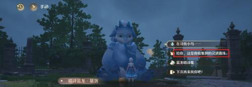 2、然后,在与蓝龙的交谈中,选取如下选项:“这是我所搜集的灵感露珠,现在交给你”,并递交相应的道具。