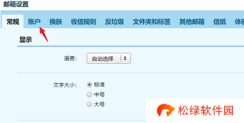 2、然后在邮箱设置中点击上方的账户。