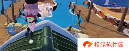 3、前往码头,在【比尔】身后房子屋顶上面找到小狗泡泡,触碰即可获得线条小狗冲呀地毯。