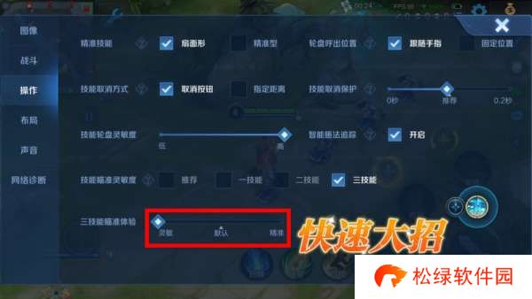 快速大招:在操作设置中,将技能瞄准灵敏度中的“三技能”瞄准体验改为灵敏,这样释放大招的时候响应速度会更快。(需要选弈星在局内才能调整)