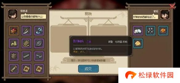 1、与霖安城凝香馆掌柜易物获得【珍珠粉】。