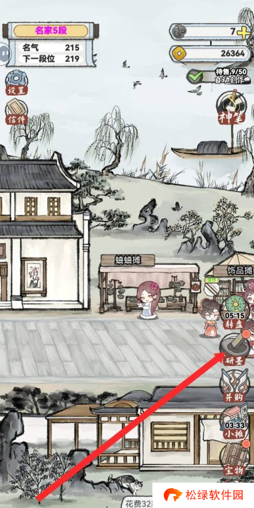 1、首先,我们要抵达游戏的主菜单,然后在界面右侧点击“研墨”选项以进入。
