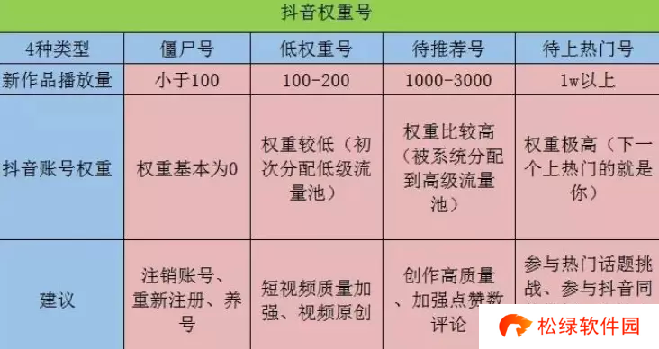 2、抖音账号的权重也会有级别之分,僵尸号、最低权重号、中途降权号、待推荐账号、待上热门账号、大V级账号;