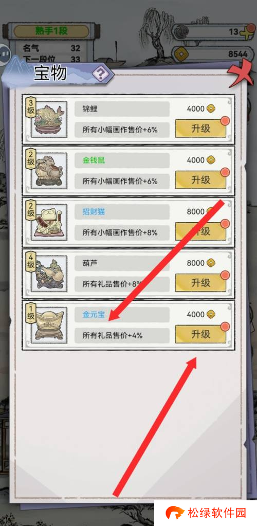 水墨记金元宝怎么升级