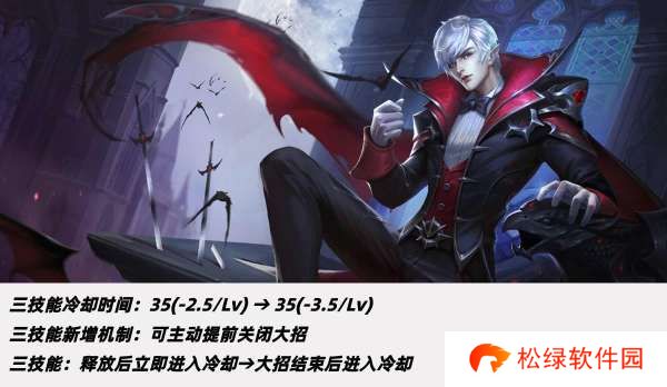 大招前期不变、满级缩短2秒,但是改为施法结束后进入冷却,新增效果可主动提前关闭大招。