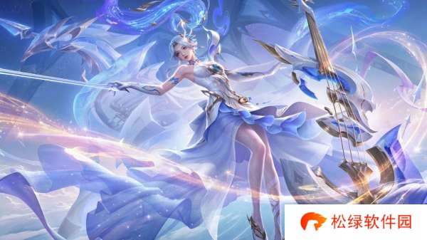 造型设计上,伽罗银白色秀发盘起搭配水晶礼服,服饰流淌着蓝色星河、闪闪发光,弓箭变成由独角兽幻化而成的大提琴。