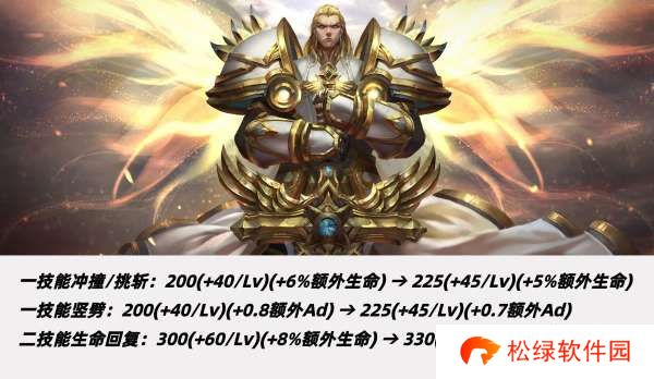 一技能冲撞/挑斩伤害:上调25-50点基础数值,下调1%额外生命加成。
