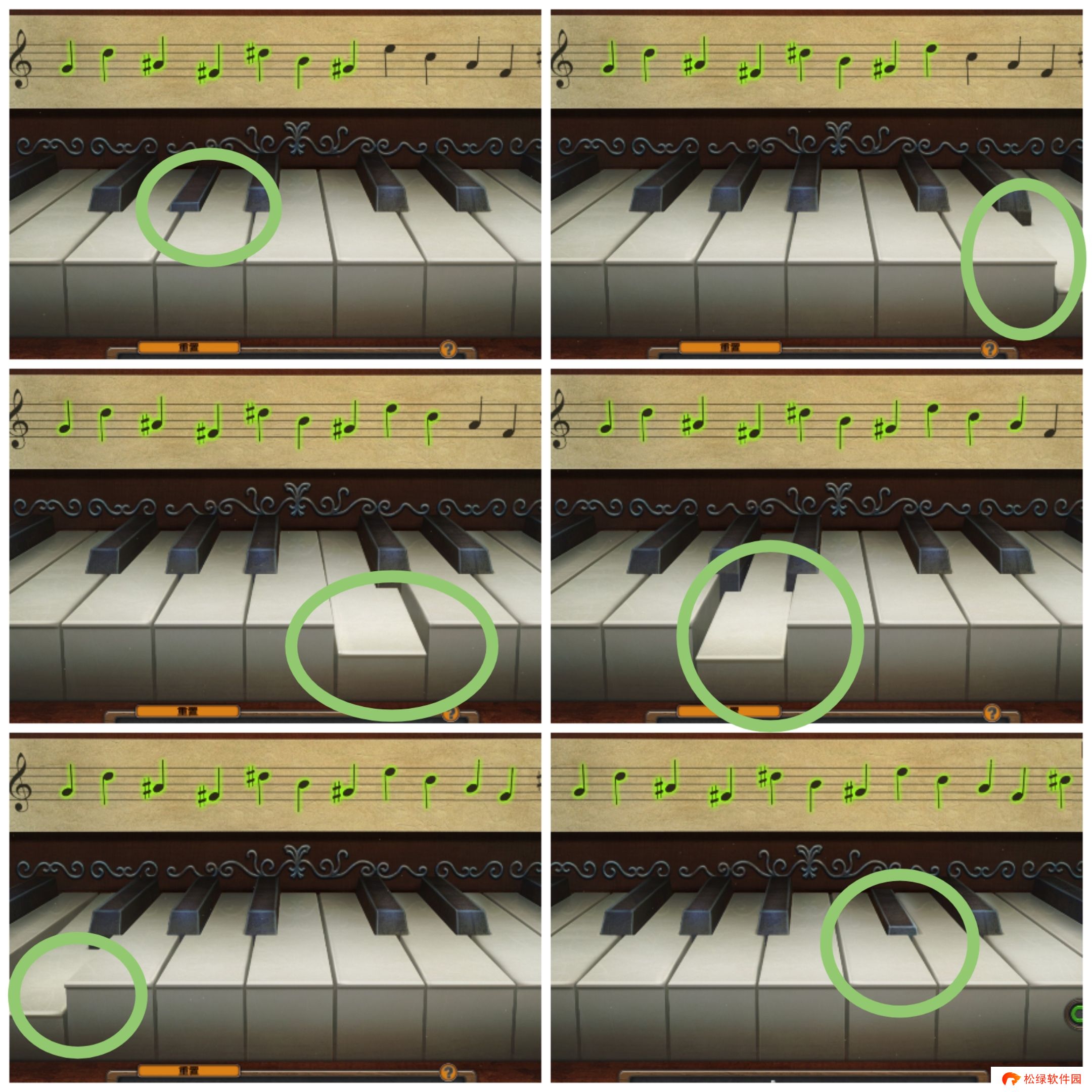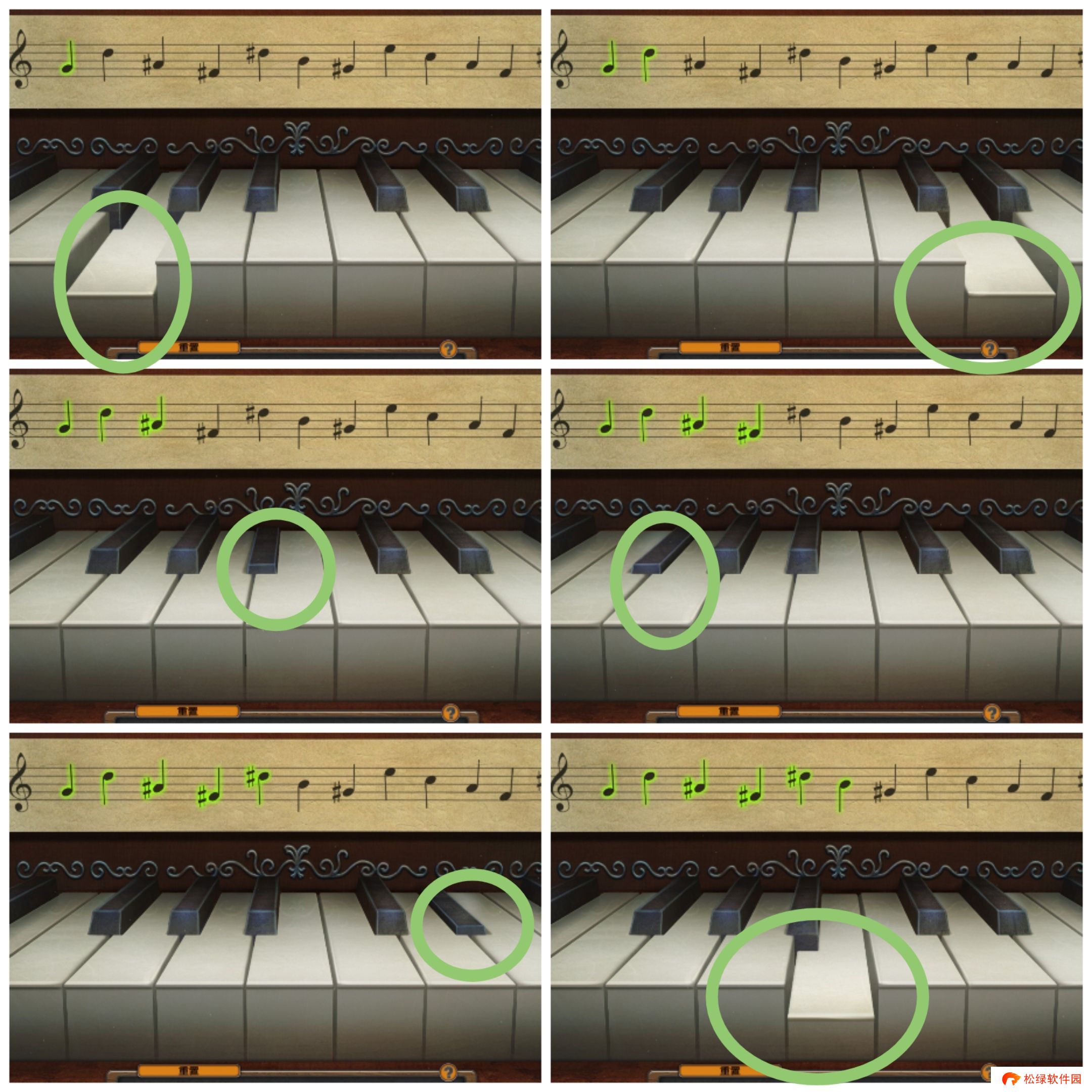 14、进入第三场景。打开钢琴,安装钥匙(钢琴键,估计是机翻),使用笔记,琴键顺序如下。获得弹夹。