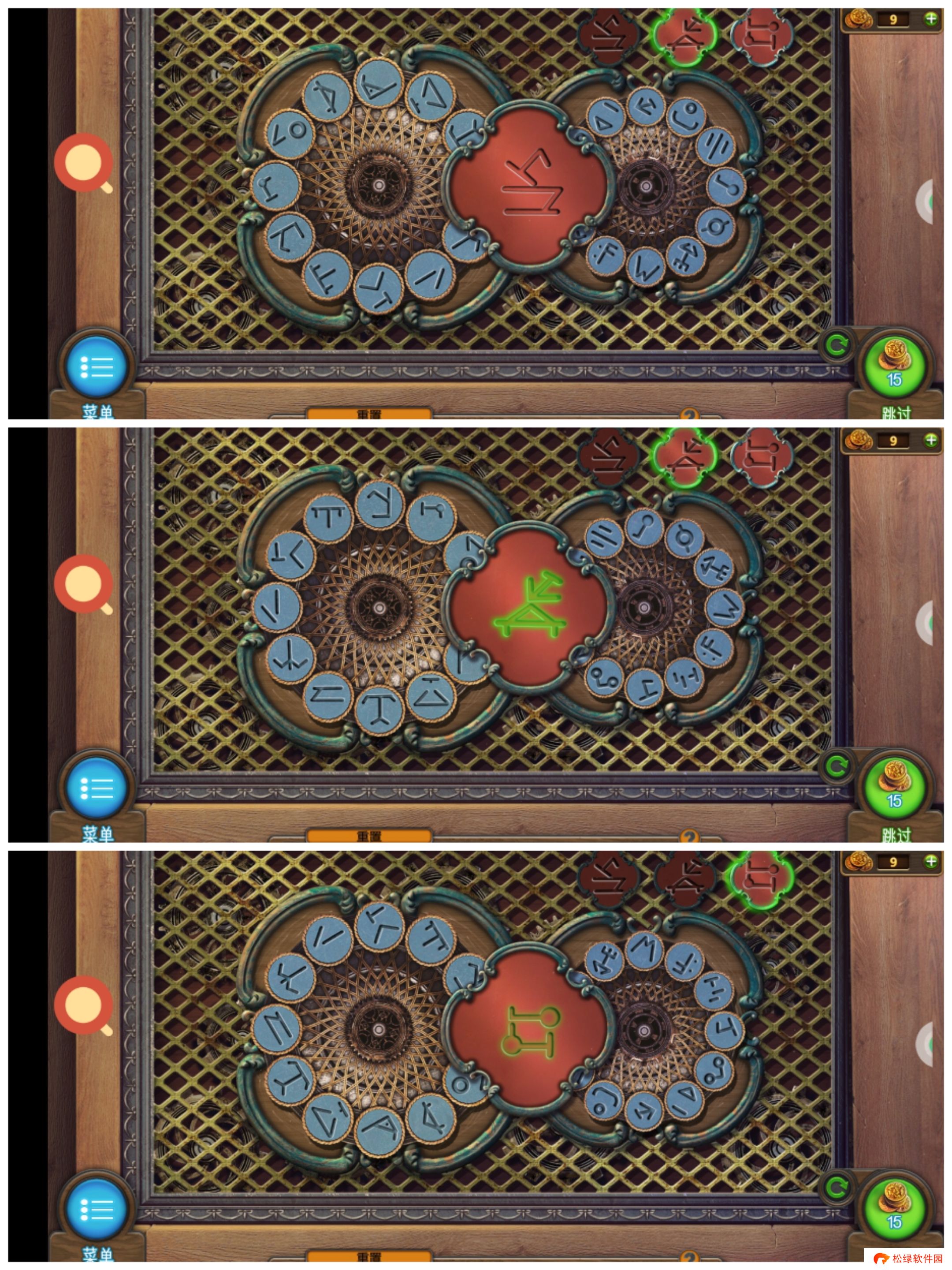 18、回到第一场景,用钥匙打开铁门,玩小游戏(注:销子可以拔掉,也可以插入空处,多玩几次就成功了),获得燃烧器。