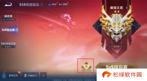 2、开启条件:该系统将在每个赛季玩家赛季最高段位到达最强王者时开启,入口位于在5v5排位赛界面。