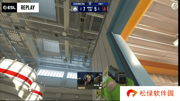 下半场攻守互换。虽然外场donk又被颗秒,但magixx黄房突破三杀融化A区防守,绿龙拿下下半场手枪局。
