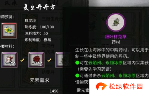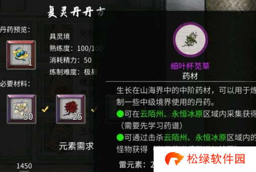 14、培元丹:玄灵液×50、大蓟根茎×30。