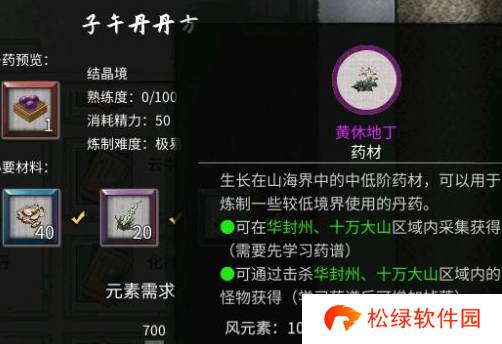 3、玄元丹:寒天龙蒌×40、长脑参×20、太玄松茸×20、千叶露×20。
