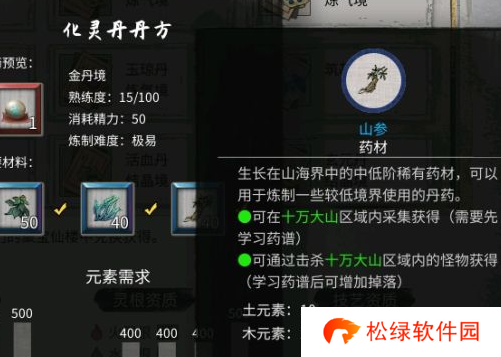 6、化灵丹:荨苎麻×50、极寒鱼尾草×40、山参×40、千叶露×50。