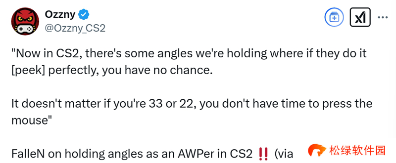 “如今在CS新版本中,当我们架着某些角度时,如果对手做出了顶级peek,那么你没有任何机会。