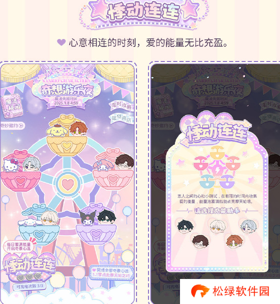 1、参与[悸动连连]玩法,和他一起收集爱的能量,为能量池充电。活动期间每日拥有3次充电次数,每日凌晨5点将自动补充3次充电次数,该次数上限为12次。