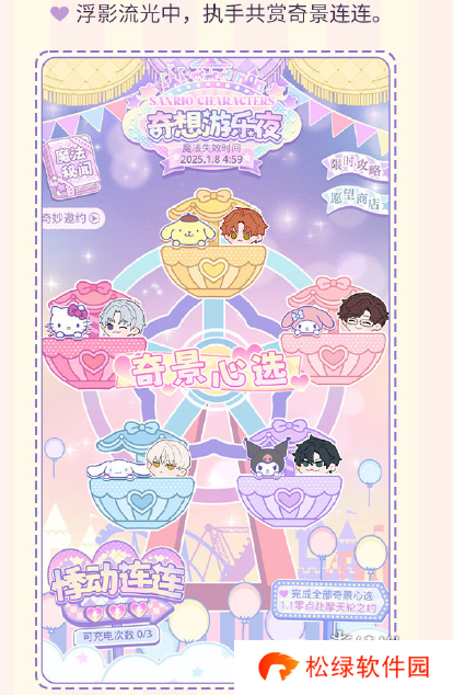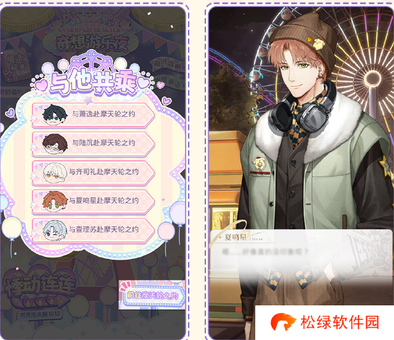 1、摩天轮之约:完成全部[奇景心选]互动后可于1月1日 00:00 起与他共赴摩天轮之约缔结甜蜜之吻。