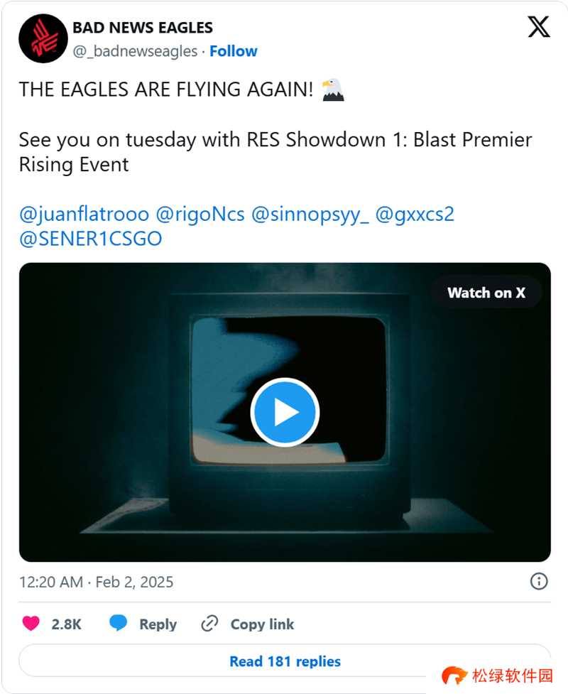 无俱乐部支持的Bad News Eagles战队宣布回归,队内将曾获得PGL 安特卫普Major、IEM 里约Major和BLAST 巴黎Major参赛资格的五名成员重新召集在一起。