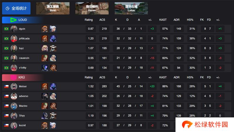 图二LOUD选择隐世修所,KRU上半场全员发挥再次守下9分,尽管LOUD下半场奋起直追,一度将比分扳平至11-11,但KRU还是顶住压力拿下最后两回合,以13-11惊险带走比赛胜利,顺利与MIBR会师败者组第四轮。