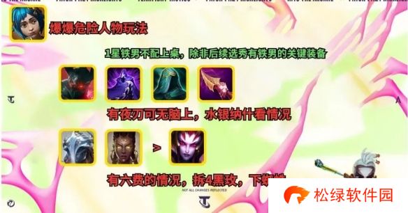 其次铁男一星没合适的装备的情况,不拆炸弹人或者前排统领(有夜刃、金身可无脑上),9级六费卡除了狼人都可以直接替换蜘蛛