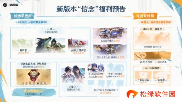 王者荣耀即将开启年度版本信念福利,玩家们完成相应的任务即可免费获得新皮肤、英雄等奖励,由于很多伙伴们不知道福利有哪些,接下来小编就为大家带来详细的汇总,感兴趣的伙伴们一起来看看吧。