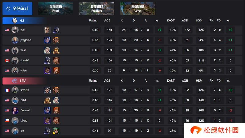 2025 VCT 美洲启点赛,胜者组半决赛,G2对阵LEV。图一G2选择深海明珠,trent与leaf火力全开,G2攻守压制以13-5轻松先下一城。