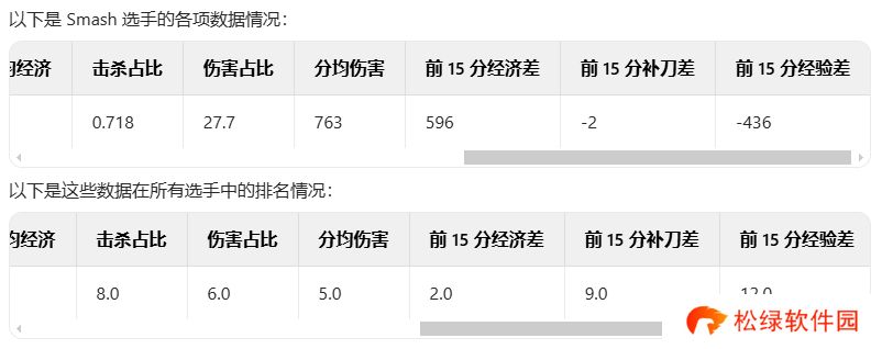 而在前15分钟的补刀差和经验差上,Smash的整体排名则相对靠后,前15分经验差为-436排名第12,前15分补刀差为-2排名第9。