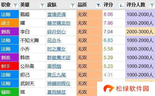 众所周知无双皮一直因高昂的获取成本而难获高分,直到今年的甄姬联动才首次突破八分门槛。螭龙剑再次做到了这一点,8.0的分数在无双皮中足以排名次席。
