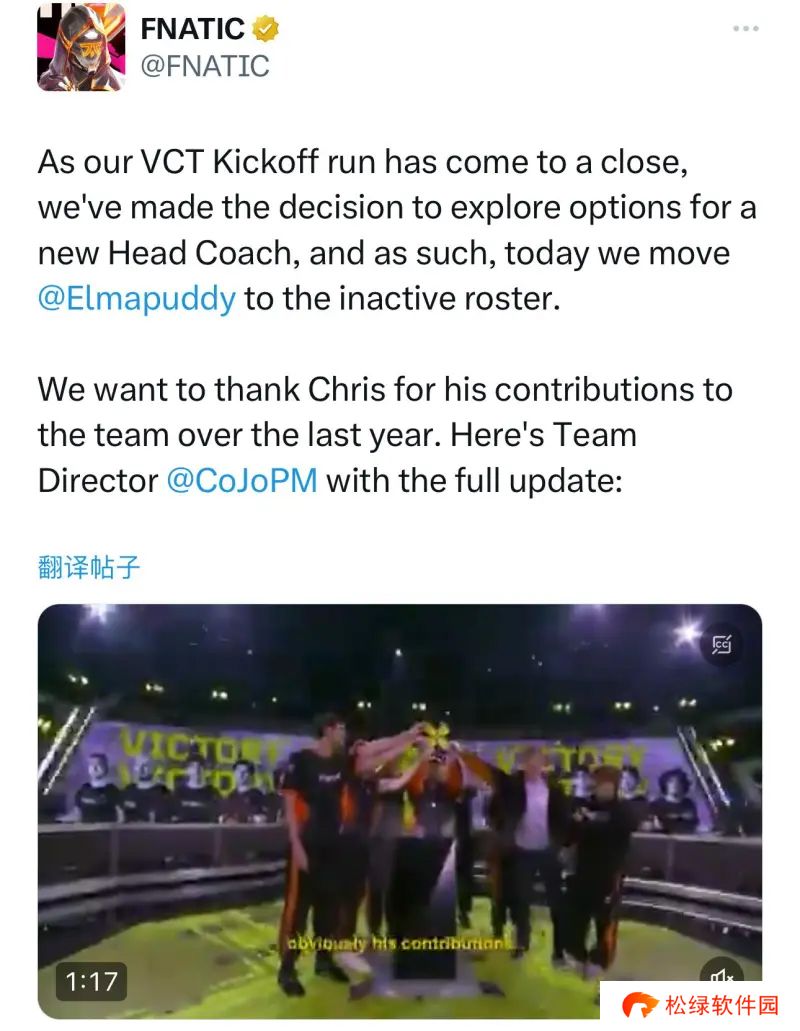 VCT EMEA赛区FNC战队官宣人员变动公告,原文大意如下: