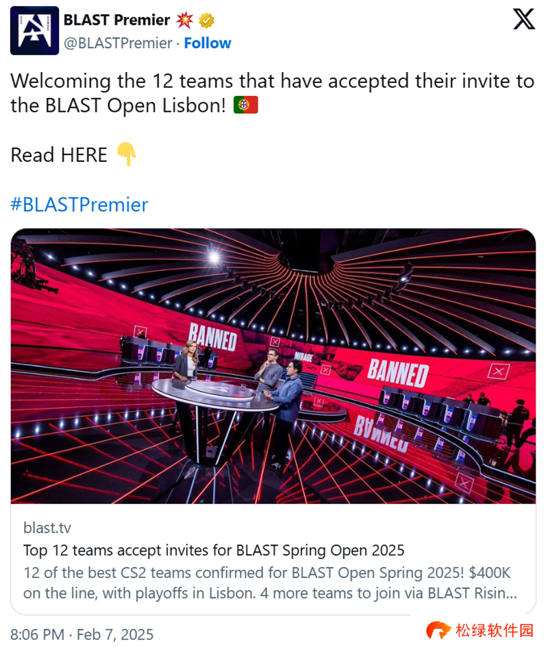 BLAST已公布了受邀参加2025年BLAST 公开赛 里斯本站的12支队伍。首先进行的是BO3双败淘汰赛小组赛,比赛将于3月19日至24日在丹麦哥本哈根拉开帷幕,